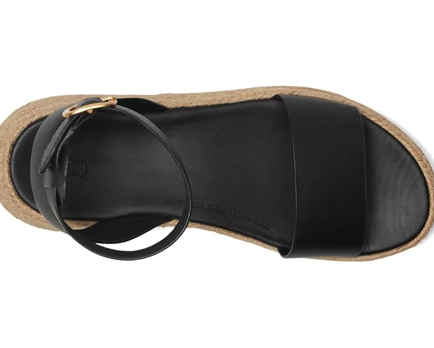 - Showcase refinement in your modern look wearing the FitFlop™ F-Mode Espadrille Leather Flatform A/Strap Sandals. Featuring sleek straps atop a chunky yet lightweight espadrille sole, they’re crafted from soft, high-quality leather upper. Wrapped in natural jute for a carefree beachy vibe, these sandals pair style with substance. An adjustable buckled ankle strap ensures both a secure fit and an aesthetic edge, while the leather lining adds a luxurious touch. Built on a flatform version of FitFlop’s ultra-comfortable MicroWOBBLEBOARD™ midsole, they offer extra height and unmatched cushioning.