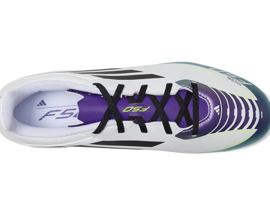 - Get ready to make an impact on the field wearing the adidas® F50 Club Messi Football Boots Flexible Ground. These Messi soccer cleats have you covered for fast-paced play. The soft and flexible faux leather upper of these shoes allows for quick and agile movements. Experience long-lasting comfort and support with their cushioned insole and textile lining. The abrasion-resistant rubber outsole of these football cleats gives you the traction and stability you need for explosive acceleration, so you can make the difference when it matters the most.