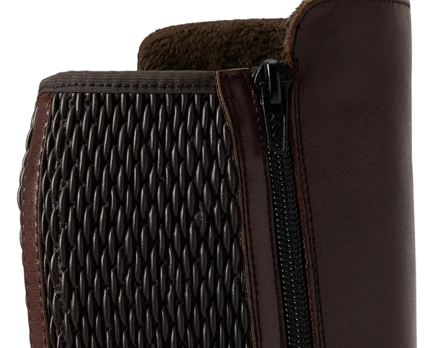 - The Rieker® Z9591 tall leather boot boasts a stretch back panel for a comfortable fit.