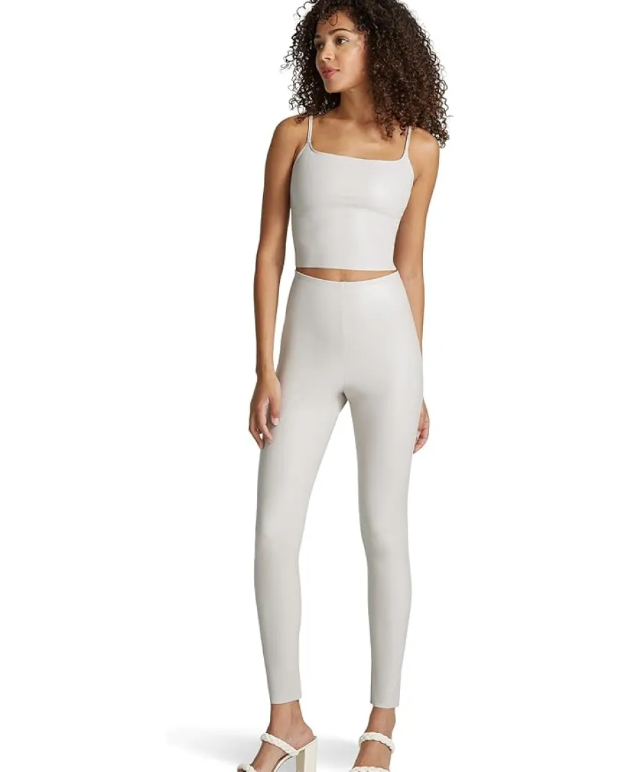 - Flaunt your effortless style wearing the cropped length Commando™ Faux Leather Cami Crop Top FLT214. Crafted from four-way stretch and high recovery fabric, this regular fit top features adjustable spaghetti straps, scoop neckline, sleeveless style, raw-cut edges and straight hem.