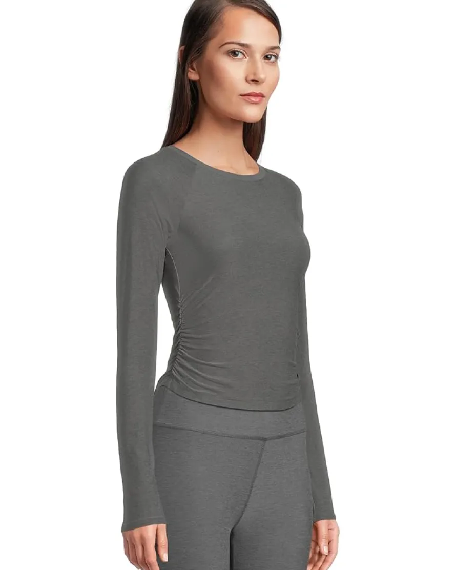 - Slip into effortless style donning the Beyond Yoga® Featherweight Your Fit Long Sleeve Top. Crafted from airy Featherweight fabric, this fitted top delivers a second-skin feel, while shirred sides stretch and contour to your unique shape for a flattering, custom fit-no tailor needed! The longer length adds extra coverage, and its classic crew neck and long sleeves make it perfect for layering or wearing solo. With its pull-on design, this top blends comfort and style seamlessly, offering the ultimate go-to piece for your active or casual days.