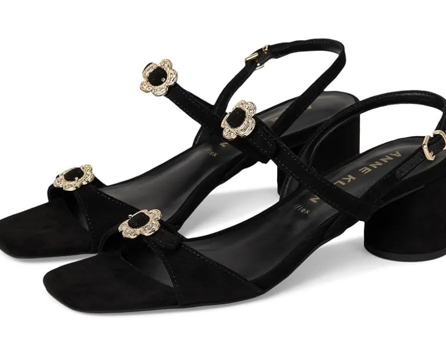 - The Anne Klein® Felipa sandal blends modern sophistication with all-day wearability. Crafted with a luxe faux suede upper and soft cotton lining, this open-toe beauty ensures effortless style. The buckle ankle strap offers a secure fit, while the durable rubber insole and outsole provide lasting stability. Designed with Anne Klein’s exclusive iFlex Technology, the ultra-padded footbed and flexible TPR outsole allow for a 90-degree footbend, delivering unparalleled comfort and movement.