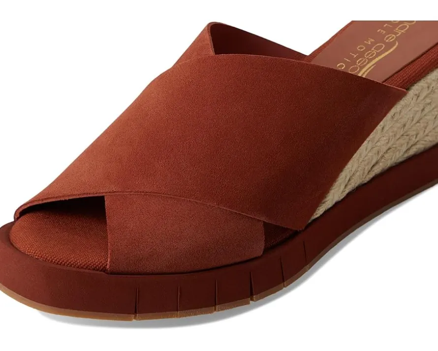- Take a stroll through the town or head out for daily commutes in comfort and style wearing Andre Assous™ Filo Sandals. The slip-on style sandals are crafted with a leather upper, lining, and insole. The jute-wrapped wedge heel detail elevates your look effortlessly.