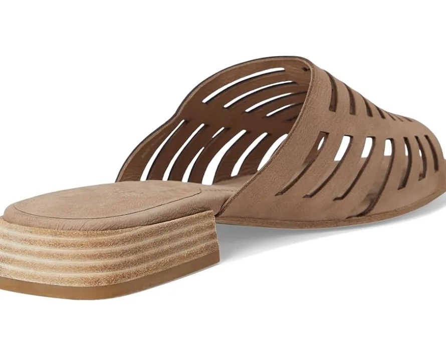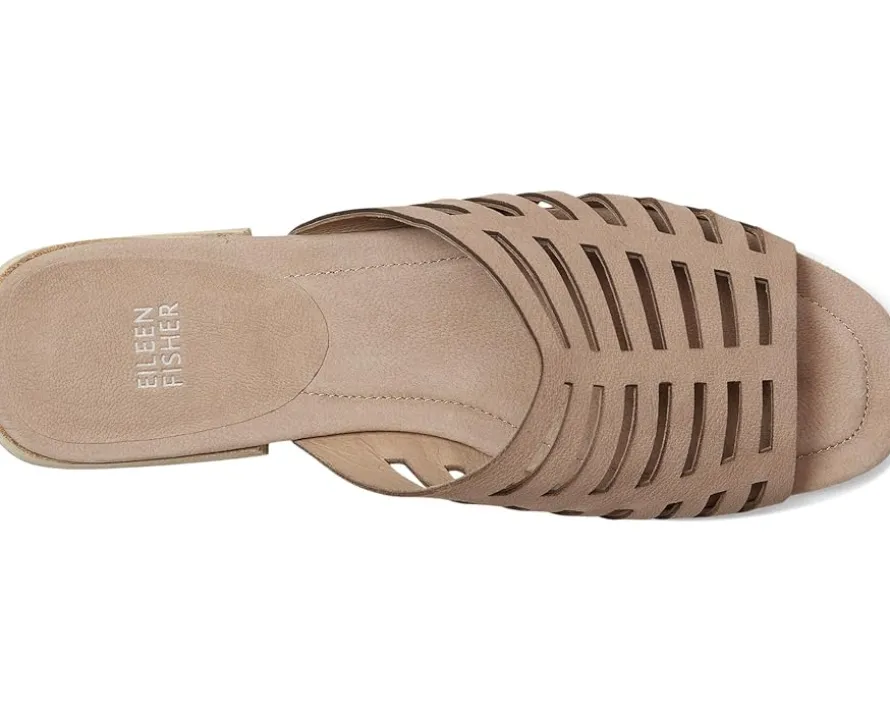 - Walk with grace wearing the Eileen Fisher® Fira Slide. Featuring open square toe, low heel slide with single band upper that has cutouts all around. Crafted from leather upper, lining, insole and sock for comfort.
