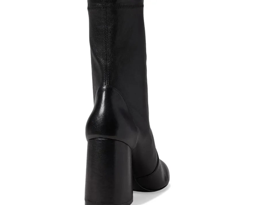 - Take every stpe in the most stylish way wearing the uber-stylish Stuart Weitzman® Flareblock 85 Stretch Bootie. The mid-calf length boots feature an almond toe shape, block heel and easy pull-on style. Crafted with a leather upper, leather and textile lining and insole, these boots are a smrt addition to your shoe collection.