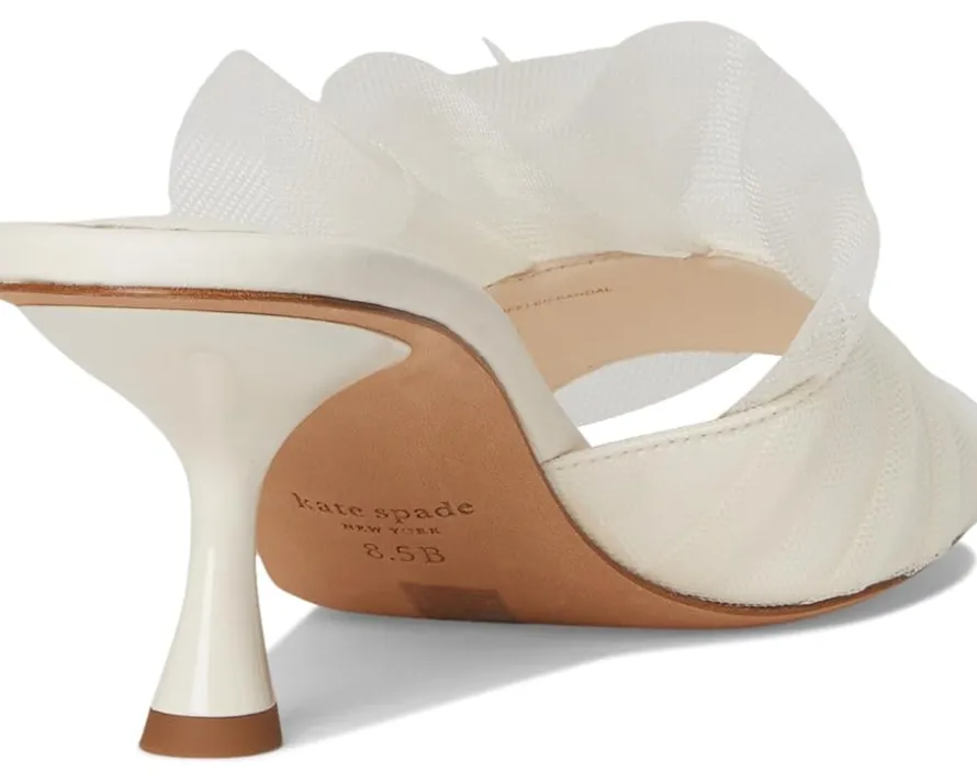 - Up your footwear game adding this Kate Spade New York® Flourish slip-on to your collection. It has leather upper with a 3D flower strap and slide on style. Lined with leather the slip on features open toe, leather insole and wedge platform.