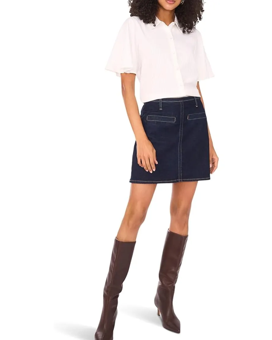 - Amp up the style game effortlessly wearing the Vince Camuto® Flutter Sleeve Collar Button-Down Shirt, adorned with an allover floral print. The classic-fit shirt features a collared neck, short flutter sleeves, button-front closure, and a straight hem.