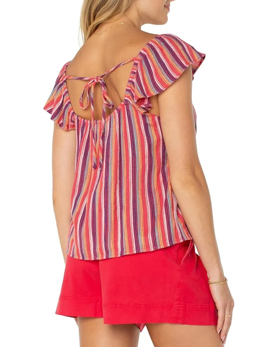 - Effortless charm meets breezy elegance in the Liverpool™ Los Angeles Flutter Sleeve Woven Top With Ties! Designed for those who love a touch of femininity with everyday comfort, this chic staple features a classic fit with a round neckline and delicate flutter sleeves that bring a graceful, flowy appeal. The pull-on design ensures easy wear, while the vibrant striped pattern adds a playful yet sophisticated pop of color to any outfit.