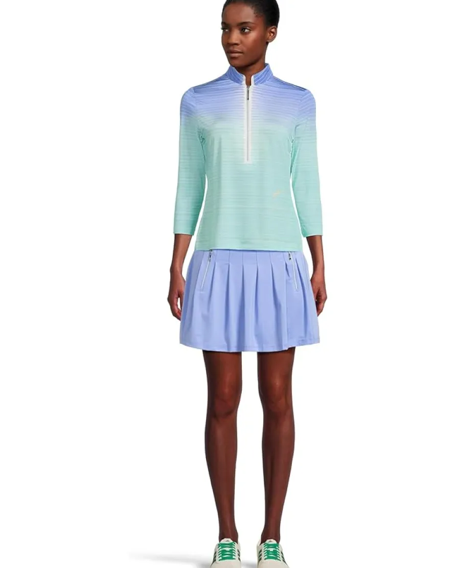 - Jamie Sadock® Flux Print 3/4 Sleeve Top is a literal work of art designed, refined, and produced to be nothing like anything else on the market. Classic silhouettes infused with distinct details that set you a cut above others. Crafted from lightweight, performance fabric with stretch, the top features a mandarin neckline with a quarter-zip placket, three-quarter-length sleeves, and a straight hem. Look Good Feel Good Play Good!