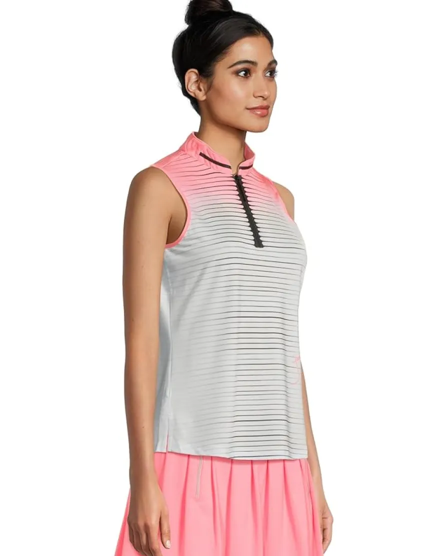 - Jamie Sadock® Flux Print Sleeveless Top is a literal work of art designed, refined, and produced with the intention of being nothing like anything else on the market. Classic silhouettes infused with distinct details that set you a cut above others. Crafted from lightweight, performance fabric with stretch, the top features a mandarin collar with a zippered front and sleeveless style. Look Good Feel Good Play Good!