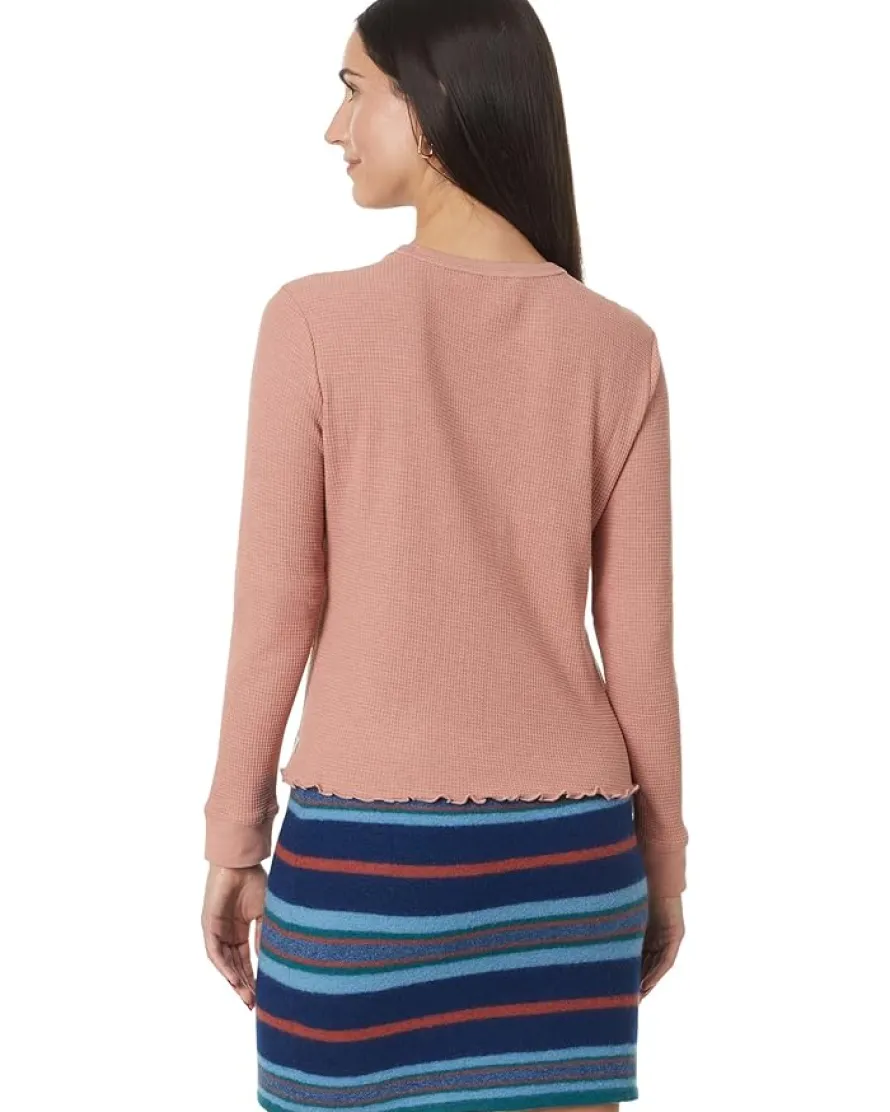 - The Toad&Co® Foothill Long Sleeve Crew II is a cozy wardrobe essential perfect for everyday wear. Made with a heritage-inspired blend of organic cotton and recycled polyester, this top features a soft interior and waffle exterior for ultimate comfort. The crew neckline and long sleeves make it a versatile piece for all seasons, while the rib collar and cuffs add a classic touch. With a charming floral design and lettuce hem, this top is sure to become a favorite in your closet.