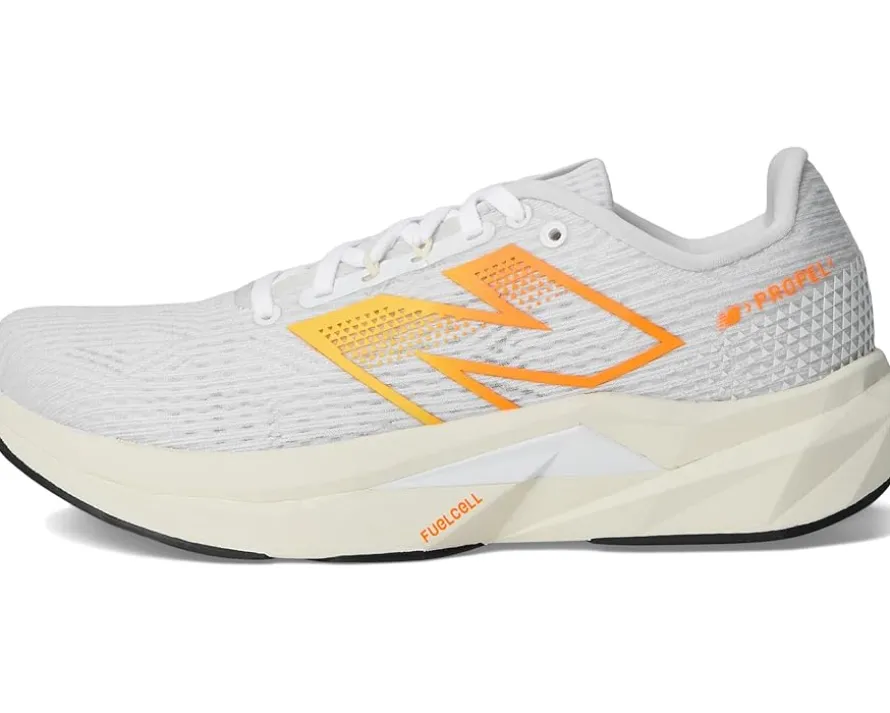 - Designed with comfort and energy return top-of-mind, the New Balance® FuelCell Propel v5 shoes are crafted for runners of all styles. The FuelCell foam midsole of these shoes delivers a propulsive feel to help drive you forward. These running shoes are made of a structured mesh upper that offers breathability and a lightweight fit. The cotton lining and ethylene vinyl acetate insole provide added comfort. Experience comfort like never before wearing these lace-up shoes.
