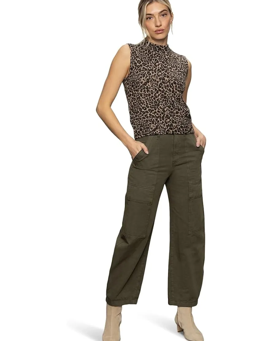 - Add a touch of fun to your look choosing the Sanctuary™ Fuzzy Shell top! Featuring a ribbed mock neckline and a playful animal print pattern, this top is a must-have for any fashion lover. The sleeveless style and straight hem offer a flattering fit that can be dressed up or down for any occasion.
