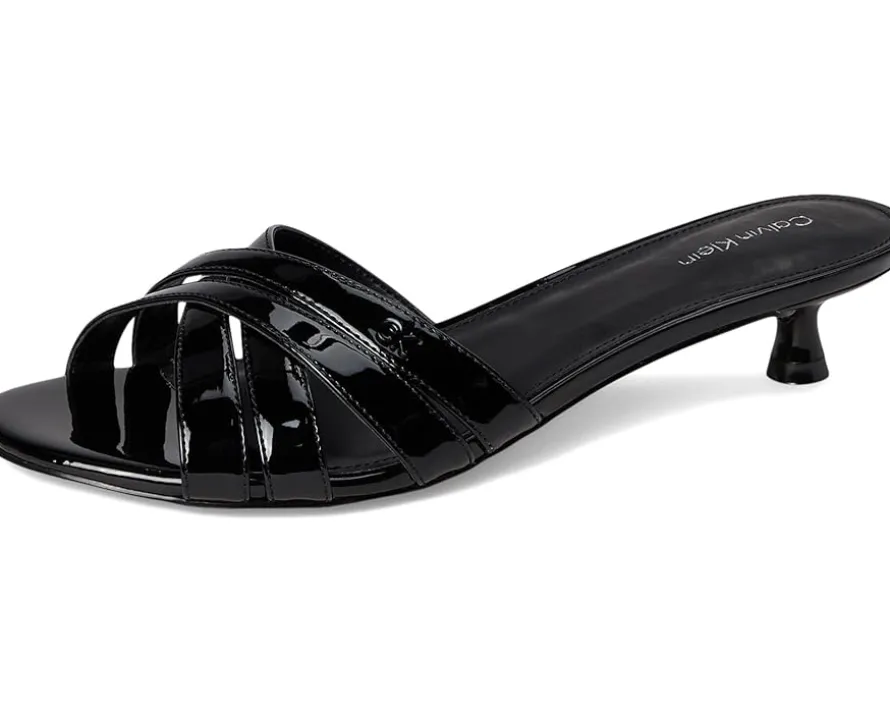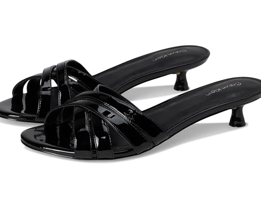 - Amp up your style in the Calvin Klein® Gabbie dress sandals. These heeled sandals are designed with a faux leather upper, cushioned footbed, and polyurethane lining. They feature an open, round toe shape, slip-on silhouette, and crisscross straps. These slip-on heels will be a staple in your wardrobe.