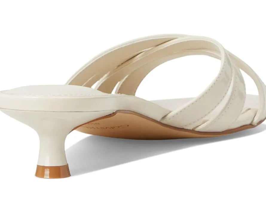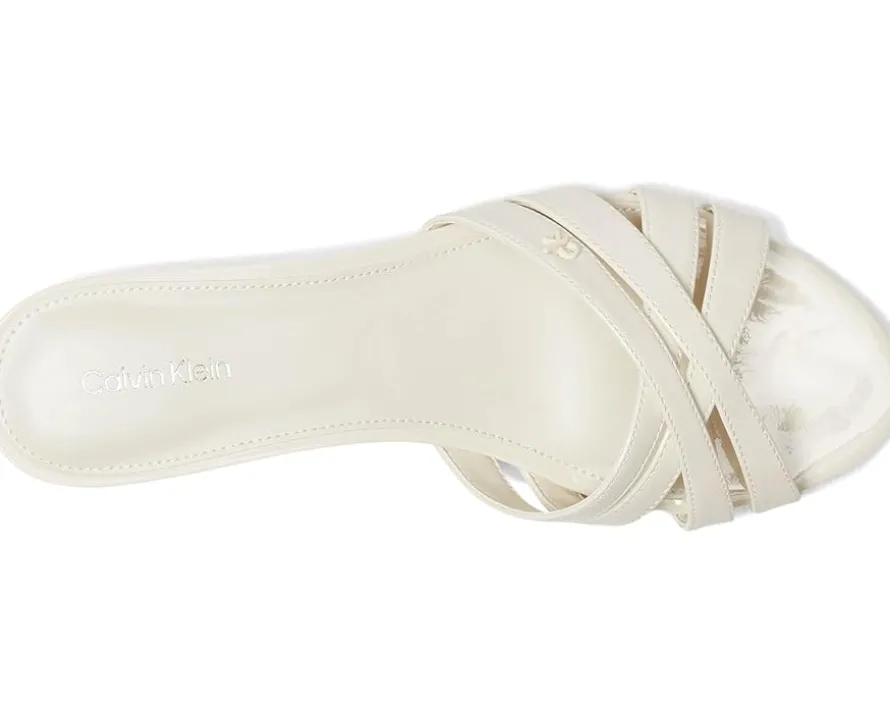 - Amp up your style in the Calvin Klein® Gabbie dress sandals. These heeled sandals are designed with a faux leather upper, cushioned footbed, and polyurethane lining. They feature an open, round toe shape, slip-on silhouette, and crisscross straps. These slip-on heels will be a staple in your wardrobe.