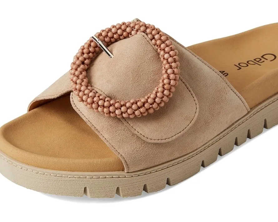 - The Gabor® Gabor 63.745 features a subtle heel, offering a sophisticated and comfortable boost in height. A rip tape fastening disguised as a buckle trim rests atop the sandal, providing a secure fit to wear through the day!