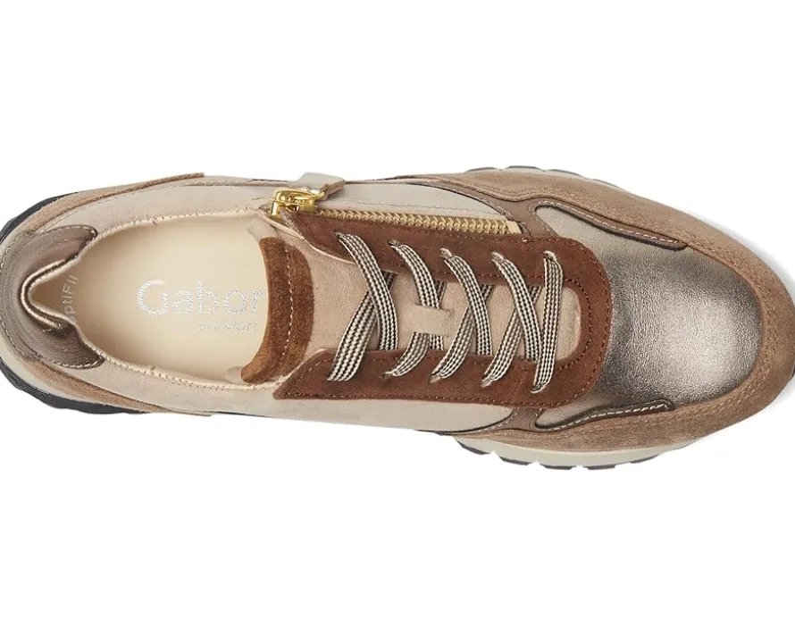 - The Gabor® Gabor 76.378.82 is a fancy sneaker with an easy-on zipper and laces. Made with suede upper and leather lining, these shoes are both stylish and durable. The cushioned, supportive insole ensures all-day comfort, while the flexible EVA outsole allows for easy movement.