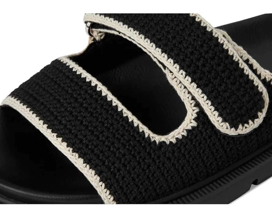 - Slip into ease and trend with MIA™ GABRI. This playful sandal is crafted with a chic crochet faux leather upper, double hook-and-loop straps, faux leather lining, and our MIA™ signature faux leather footbed for maximum comfort. The open round-toe silhouette with easy slip-on style allows quick on/off.