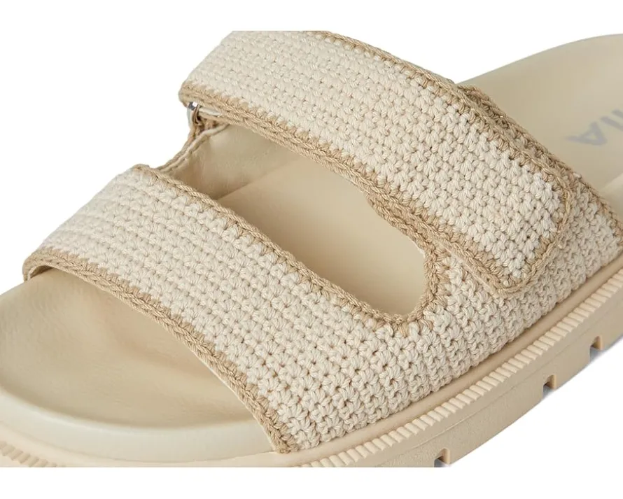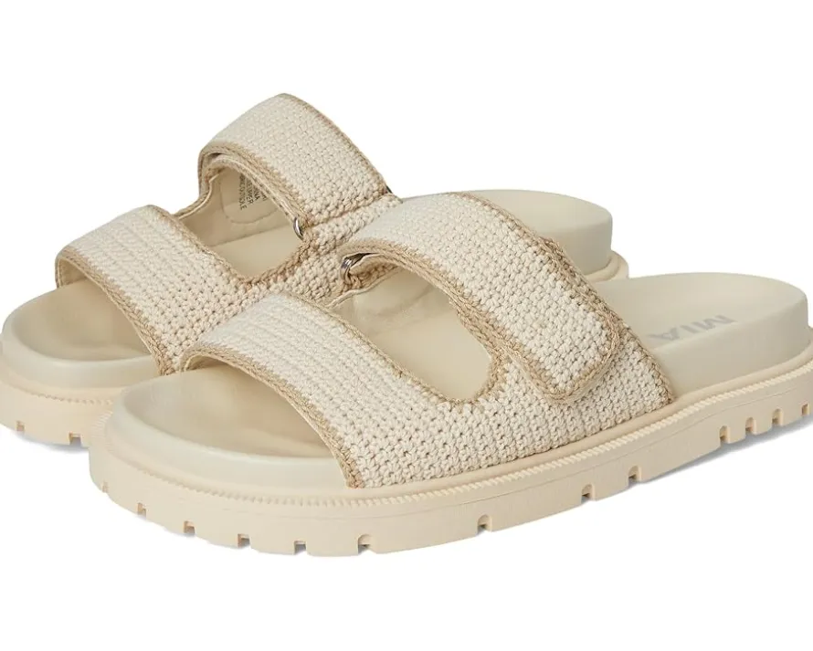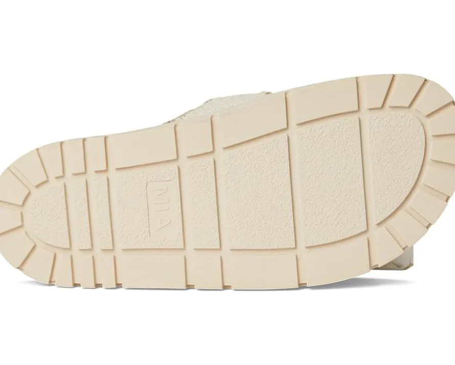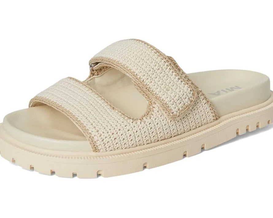 - Slip into ease and trend with MIA™ GABRI. This playful sandal is crafted with a chic crochet faux leather upper, double hook-and-loop straps, faux leather lining, and our MIA™ signature faux leather footbed for maximum comfort. The open round-toe silhouette with easy slip-on style allows quick on/off.