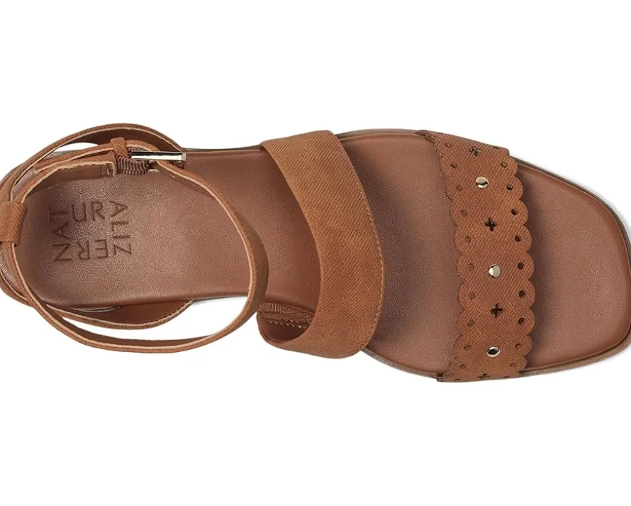 - The cool and coveted Naturalizer® Gana strappy sandals feature an ankle strap and a synthetic/fabric upper with a squared open toe design. The adjustable buckle closure adds a touch of practicality while ensuring the perfect fit. Designed with Contour+ Comfort Technology, they provide a premium fit and all-day comfort experience. The N Flex outsole offers next-level flexibility, cushioning, longevity, and shock absorption, energizing your every move.