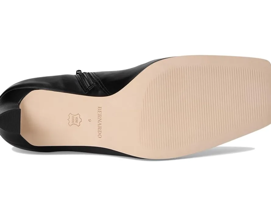- Bernardo® Garda boots: Sharp and Polished. This daring shootie’s simplicity exudes sophistication with a contemporary square toe design and an asymmetric silhouette. Crafted with luxurious leather upper and lining, these ankle-high boots are not only stylish but also durable. The leather insole provides all-day comfort, making them perfect for any occasion.