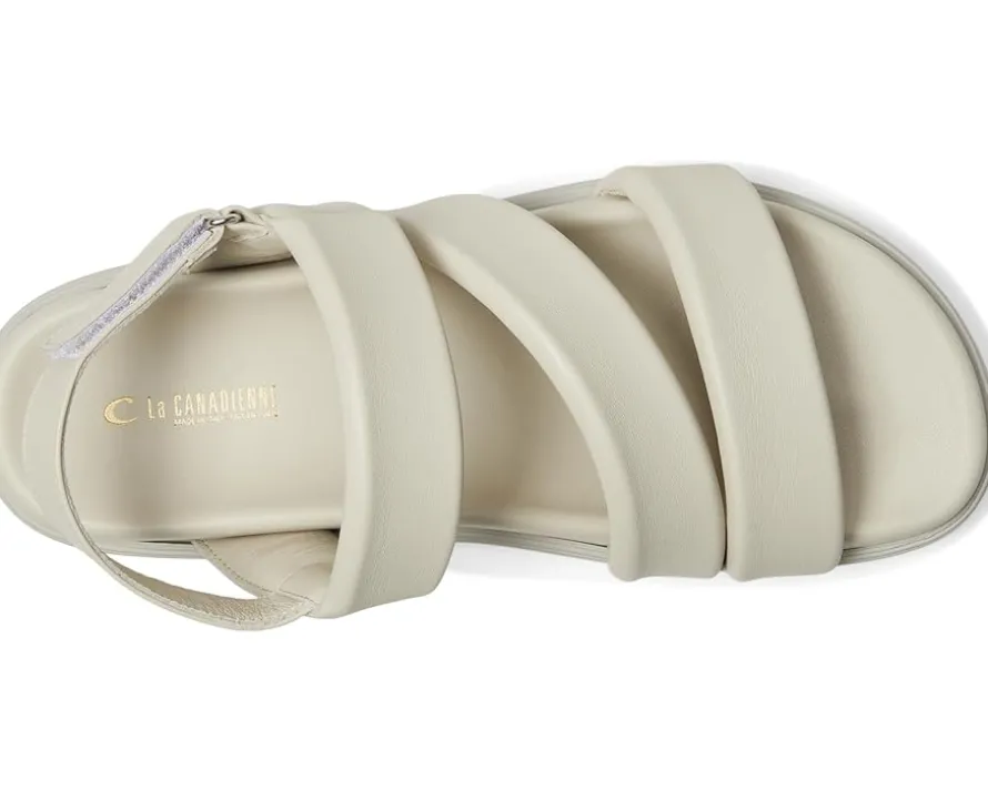 - Embrace the plush comfort of the La Canadienne® Garritt sandals. Crafted from a leather upper, these shoes offer an adjustable hook-and-loop strap closure, round open toe silhouette, breathable leather lining, and a comfort molded insole for all-day comfort.