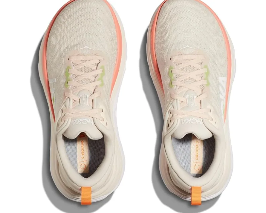 - Make life easier than ever by wearing Hoka® Gaviota 5 sneakers. The shoes feature a rounded toe and lace closure with heel pull-tabs. The textile upper and lining ensure high breathability. The shoes feature a removable OrthoLite footbed and a multi-directional lug design to let you walk with unstoppable speed.
