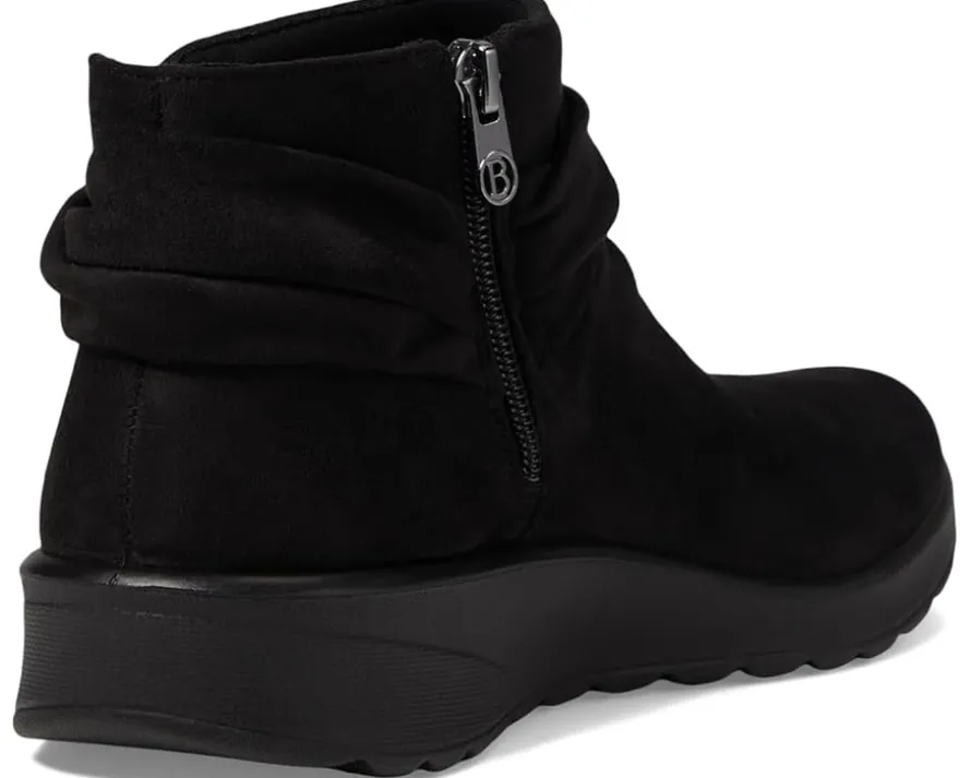 - Strut with confidence wearing the Bzees® Gemma, designed with perfection so you’ll feel weightless, energized and free. Crafted from stretch fabric upper with partially recycled linings and topcloth with a round toe, it features side zippered closure with braided detail, low heel, and a foam insole.