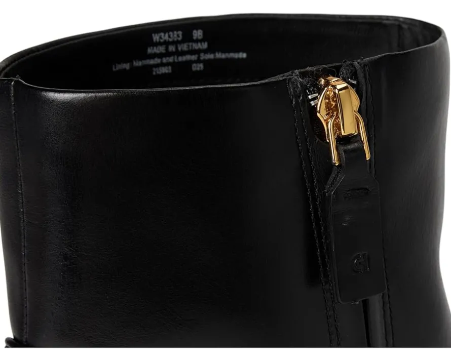 - Beyond sophistication: The Cole Haan® Gemma Dress Booties redefine your look with a blend of sleek design and effortless wearability. Designed with a timeless ankle-high silhouette, these versatile booties are crafted from premium leather uppers that elevate any outfit, whether at work or out for the evening. A convenient zippered side closure ensures easy wear, while the closed toe adds a polished finish. Inside, a soft textile lining and an EVA insole deliver breathable comfort, supported by systematic layers of Cole Haan’s proprietary cushioning compounds that make every step feel luxuriously padded. The lightweight EVA outsole, reinforced with full rubber traction, keeps you steady and stylish wherever you go.