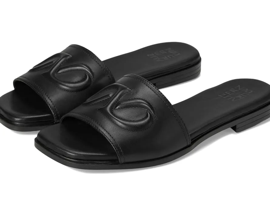 - The Naturalizer® Genevieve slide sandals are the ultimate blend of style and comfort, perfect for refreshing your footwear collection. Featuring the new Naturalizer Infinity logo, they boast a woven synthetic or leather upper with an open square toe design for a modern look. The innovative Contour+ Comfort Technology, along with the extra-cushioned new contour footbed, ensures a premium fit and all-day comfort. With its contoured shape, pressure distribution, and fatigue-reducing properties, these sandals are crafted for longer wear and an elevated walking experience.