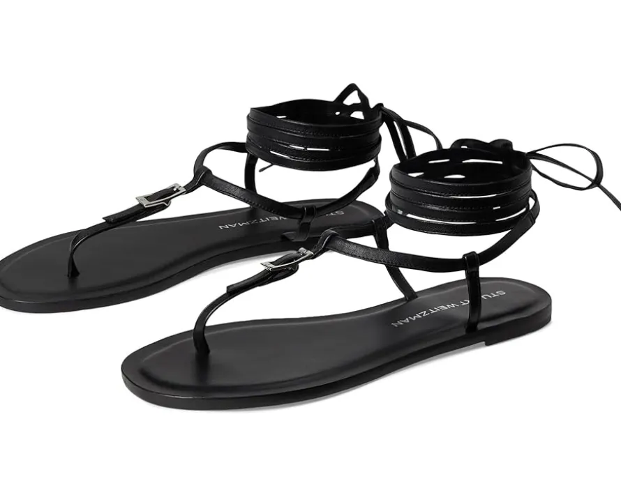 - Step out in effortless sophistication this warm weather season in the Stuart Weitzman® Georgie Lace-Up sandals. Crafted from a leather upper, these sandals feature a strappy lace-up with a tie closure, buckle detailing at the thong strap, round toe silhouette, leather lining, and leather insole.
