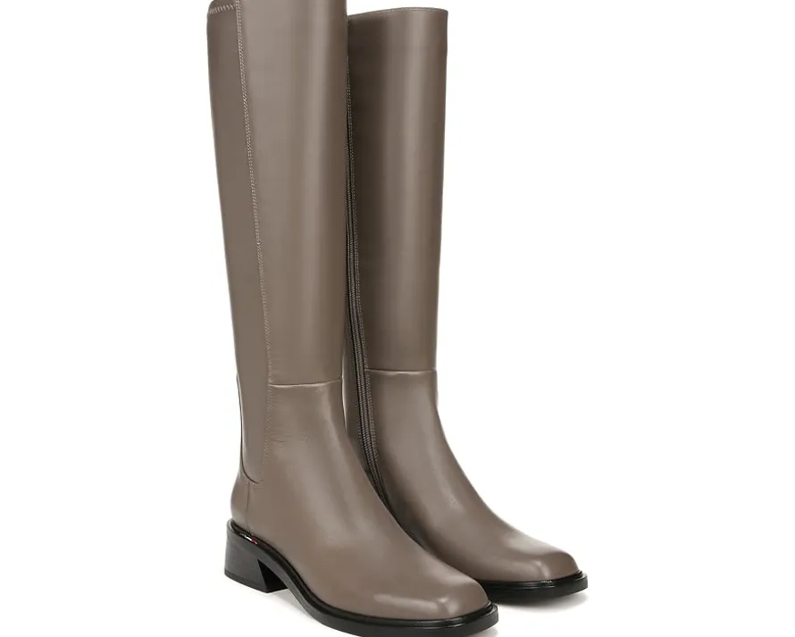 - Sleek, minimal, and endlessly versatile, the Franco Sarto® Giselle Boots are something that every woman would desire to add in her wardrobe. Constructed with a leather upper and a soft, partially recycled synthetic lining, these knee-high boots flaunt a modern square toe perfectly balanced by a stacked heel. They are equipped with a zippered closure on the side for easy on and off.