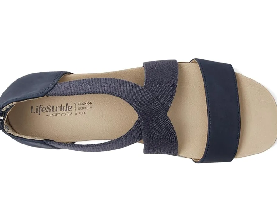 - Feel light and breezy in these sporty LifeStride® Giselle platform sandals. With faux leather upper, a soft square open toe, and stretch gore straps, they offer both style and flexibility. The back zipper makes them easy to slip on and off, and their lightweight design ensures all-day comfort. The Trusted Soft System® comfort technology provides unmatched cushioning and support. The traction sole adds stability, and the just right height platform wedge heel offers a perfect lift.