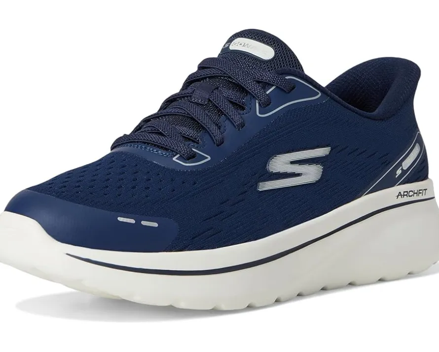 - The SKECHERS® Performance Go Walk Arch Fit N-Joy Emory Hands Free shoes are designed for effortless comfort and podiatrist-approved support. Built with Hands Free Slip-Ins™ technology, they feature a molded heel panel for easy, touchless wear and an engineered mesh upper with elastic bungee laces for a secure, adaptive fit. The removable Arch Fit® insole, developed using 20 years of data and 120,000 foot scans, offers targeted arch support that molds to your foot to reduce shock and evenly disperse weight. Paired with ULTRA LIGHT cushioning and a Comfort Pillow™ heel, these shoes deliver responsive comfort with every step and they’re machine washable for easy care.