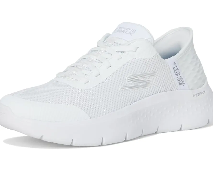 - Take every step with improved style and comfort wearing SKECHERS® Performance Go Walk Flex Hands Free Slip-Ins – Grand Entry that feature a round toe shape and exclusive heel pillow holds your foot securely in place. The sneakers are crafted with a athletic mesh upper, fabric lining, and air-cooled memory foam. The Skechers® Hands Free Slip-ins offer an easy fit and the lace-up closure gives a customizable fit.
