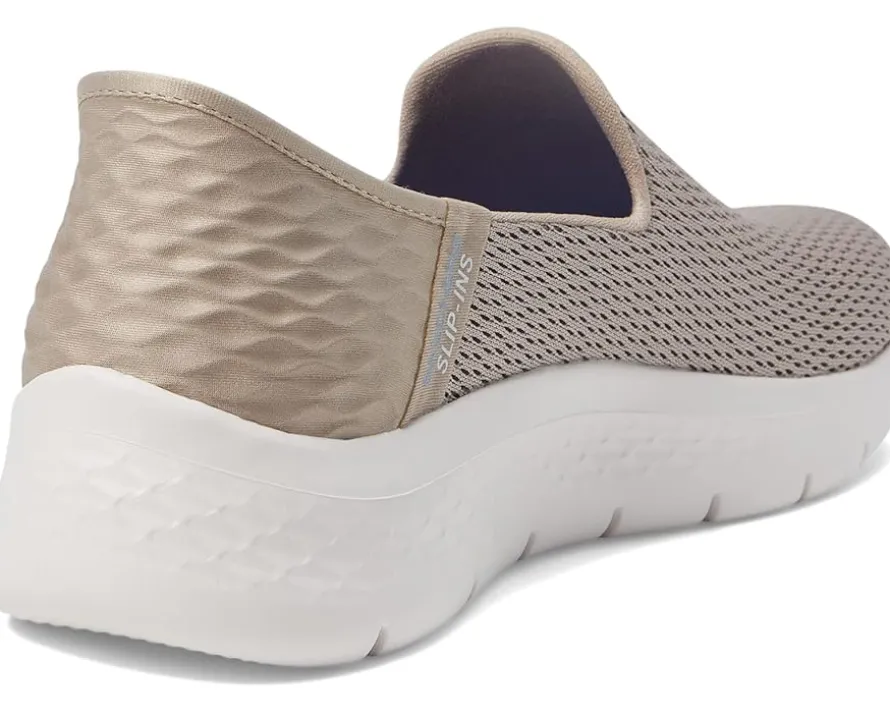- Step-in to convenient walking comfort and cushioning wearing Skechers Hands Free Slip-ins® GO WALK® Flex – Relish. This laceless design features a breathable athletic mesh upper, our exclusive Heel Pillow™, a Skechers Air-Cooled Memory Foam® insole, lightweight ULTRA GO® cushioning and Flex Pillars™ for added support.