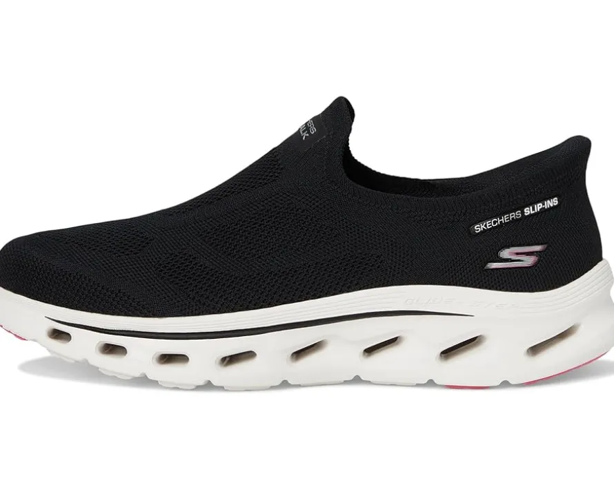 - Step-in to convenient walking comfort and cushioning wearing SKECHERS® Performance Go Walk Glide Step 2.0 Annette Hands Free Slip-Ins. Designed with exclusive heel pillow, this sporty style features a soft engineered knit upper, skechers air-cooled goga mat insole, and a lightweight ultra go cushioned glide-step midsole. It comes with round toe, and brand detailing on the tongue, heel counter, and footbed.