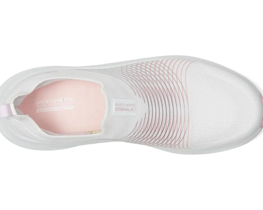 - Elevate your walking experience with the slip-on SKECHERS® Performance Go Walk Max Walker Sally. It is crafted from engineered knit upper with haptic print, fabric lining, and Air-Cooled Goga Mat™ breathable insole with high-rebound cushioning. This pair of shoes features round toe design, heel pull tab, lightweight and responsive Ultra Go midsole cushioning, and HYPER ARC® that adapts your stride to promote a smoother transition for a more efficient run