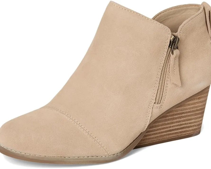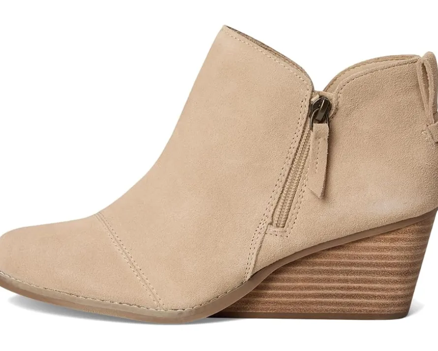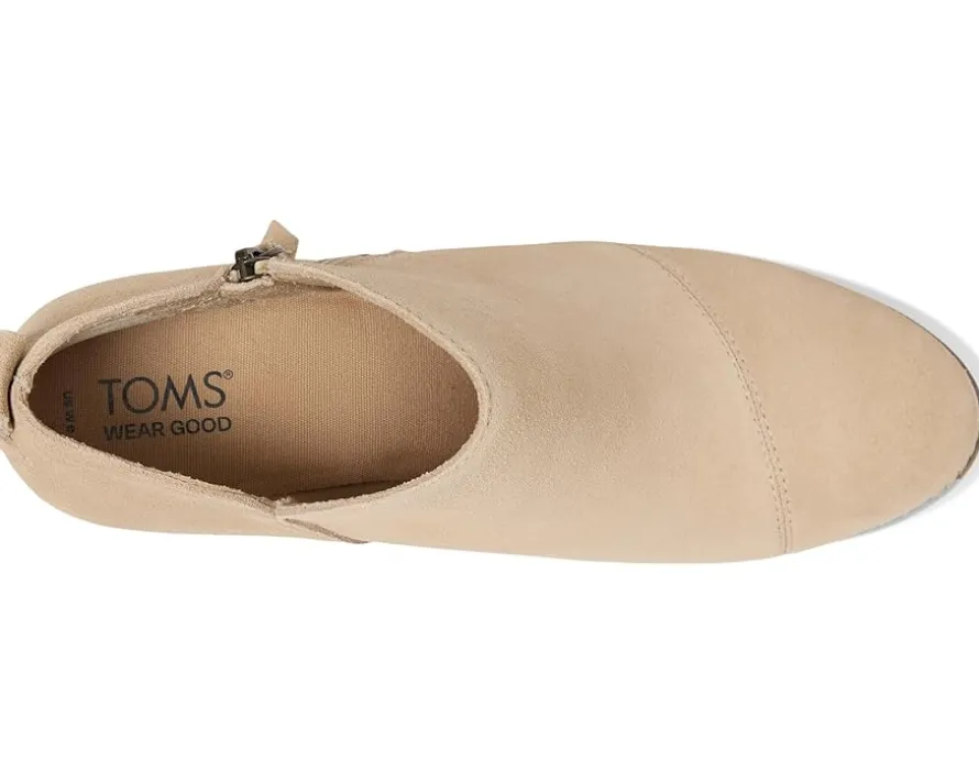 - Sleek and stylish, the TOMS® Goldie wedge bootie blends comfort with a refined silhouette. Crafted with durable leather upper, this bootie features a sculpted wedge heel for a subtle lift. The lateral zipper and rear pull tab ensure easy on-and-off wear, while the Custom CloudBound™ foam insole provides all-day cushioning and support.