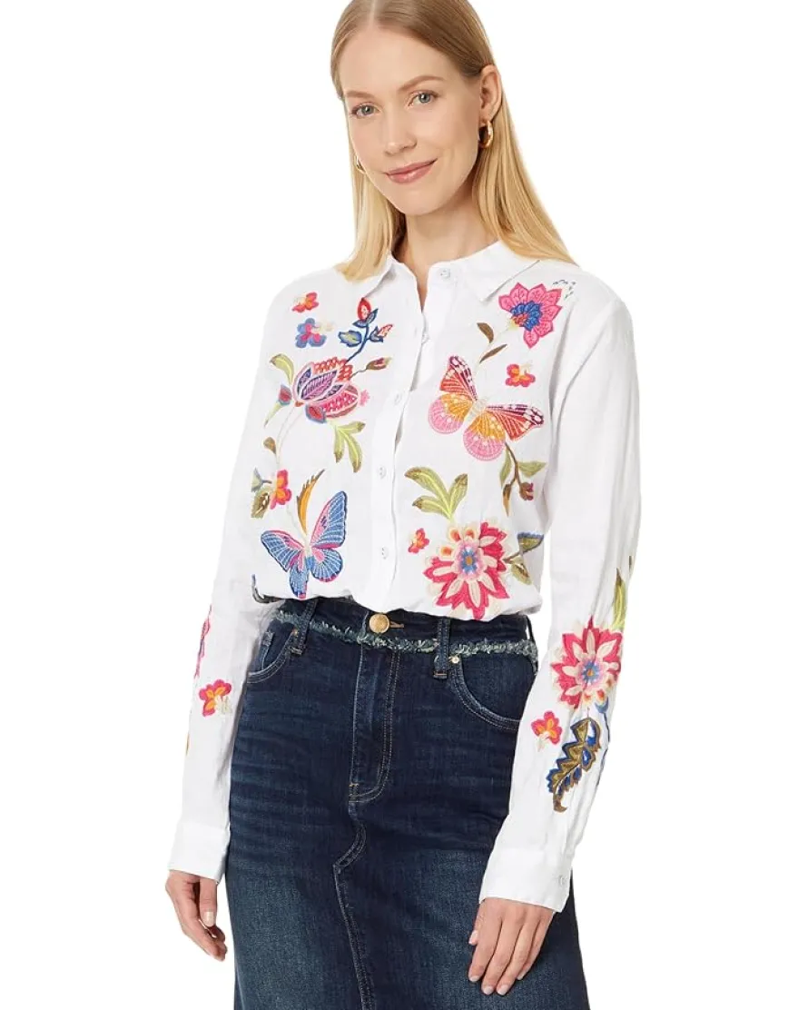- Don’t be dull at your next event, elevate your ensemble with the Johnny Was® Gracey Linen Oversized Shirt. It features long sleeves with button detailing on the cuffs, allover iconic embroidered floral work, and shirttail hemline.