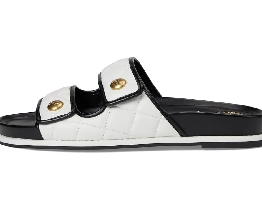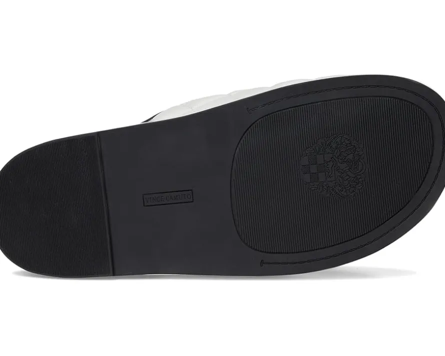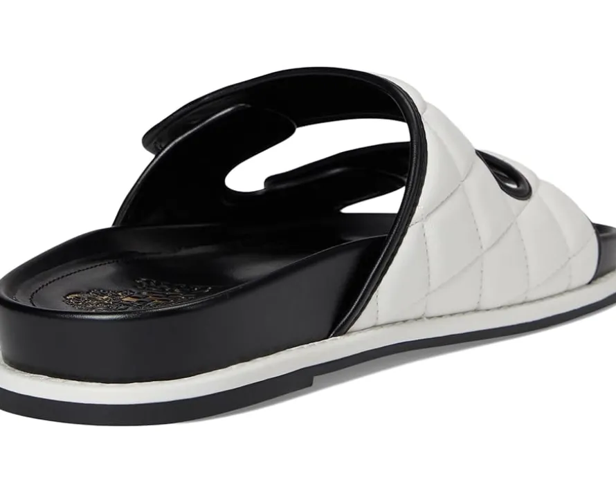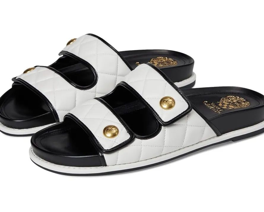 - Step into comfort and style with the Vince Camuto® Graysin Quilted Double Band Slide Sandals, featuring two fixed straps for a secure fit. The rounded open toe design and quilted detailing add a touch of elegance, while the logo button detail provides a subtle signature touch. The padded and molded sock ensures all-day comfort, and the durable rubber outsole offers reliable traction with every step.