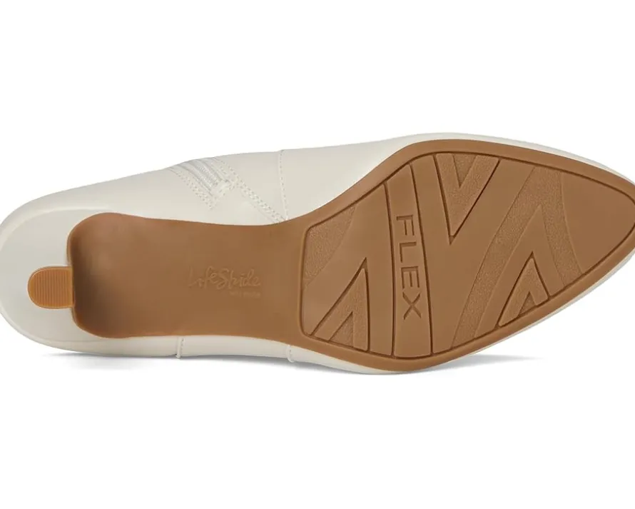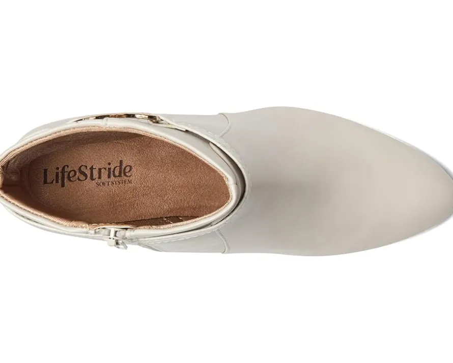 - So sleek and chic, you’ll never want to take off the LifeStride® Guild 2 boots with a sophisticated metallic detail. These heeled dress booties are designed with a faux leather upper with an almond toe shape, zippered side closure, metallic buckle ornamentation, and embossed strap detail. The polyester lining, insole board, toe box, and heel counter are crafted with partially recycled materials. With their foam insole and Soft System comfort package, these boots provide all-day support, flex, and cushioning. These ankle boots are great for many occasions.