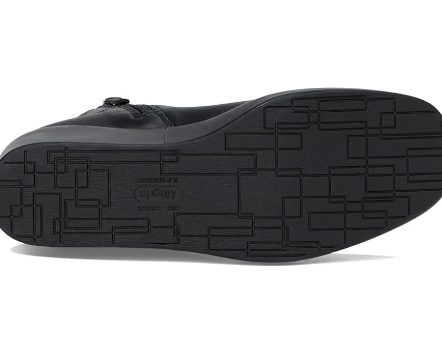 - Cradled in comfort, strutted in style. The Alegria® Hadi! Featuring a luxurious leather upper with stain-resistant properties, this ankle-high boot combines fashion with function. The inside zipper and convenient pull-on design ensure a perfect fit every time. The square toe adds a modern touch, while the wedge heel provides a subtle lift. Walk with confidence on the slip-resistant polyurethane outsole, and enjoy all-day comfort with the removable microsuede Signature Arch™ footbed. With a PU insole and lining, Alegria Hadi is your go-to boot for chic, comfortable strides.