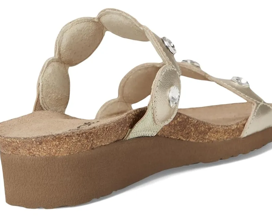- Meet Naot® Hailey – your perfect blend of comfort and glamor. With its sleek design featuring gore and dazzling rhinestone accents, this slide adds a touch of sparkle to any outfit. The easy slip-on design ensures convenience without compromising on style, making Hailey the ideal choice for any occasion. Crafted with Naot’s anatomic cork and latex footbed wrapped in pampering suede and molds to the shape of your foot with wear, ensuring personalized comfort. Plus, it’s accepted by the American Podiatric Medical Association (APMA) for promoting good foot health.