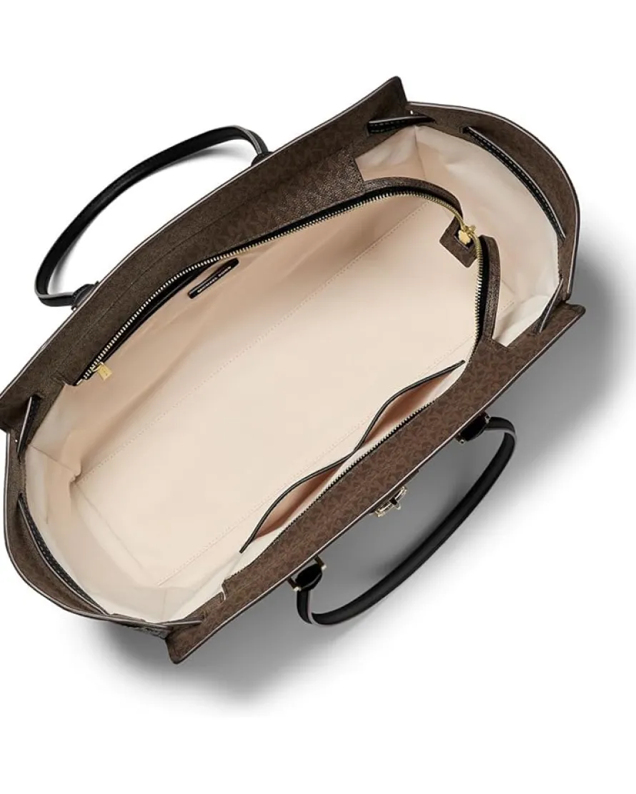 - MICHAEL Michael Kors® Hamilton Moderne Large Tote – a spacious, structured tote that brings together polished utility and elevated style. Crafted from polyvinyl chloride material, the bag features dual top shoulder straps, a zippered closure, and multiple interior slip pockets.