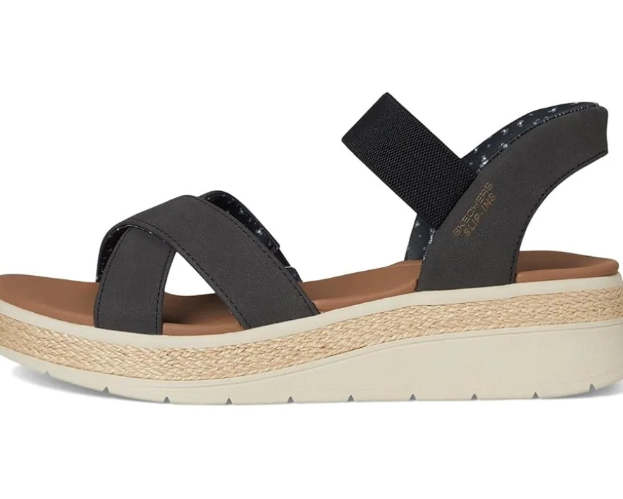 - Effortlessly elevate your style choosing the BOBS from SKECHERS® Hands Free Slip-ins Bobs Sun Ray – Move Over. The vegan leather upper delivers a polished, modern aesthetic, while the Skechers Plush Foam® cushioned footbed pampers your feet with cloud-like softness. The Exclusive Heel Pillow™ provides a secure, customized fit, so you can move through your day with confidence and ease. Finished with a stylish jute midsole trim and open, round toes for a touch of natural style.