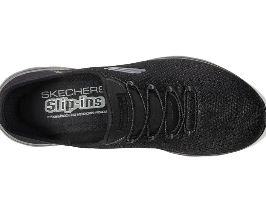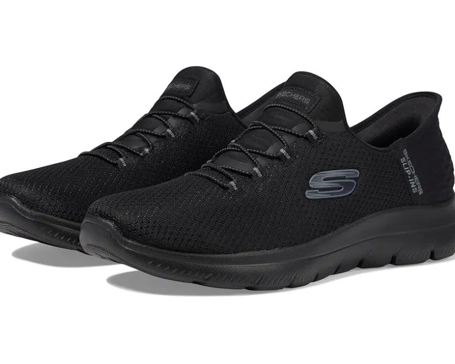 - Experience the ease of comfort and good flexibility with every step you take wearing SKECHERS® Hands Free Slip-Ins Summits Girls Night Sneakers that are designed with the exclusive heel pillow™ and a heathered jersey knit upper with fixed stretch laces for adjustability. The slip-on style sneakers come with a cushioned Skechers air-cooled memory foam® comfort insole and features a low-top design withthe classic round toe shape.