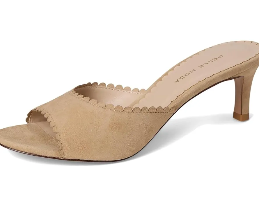 - The Pelle Moda® Hanli is a perfect day or evening slide with soft suede upper that has scallops around the edges. A sleek kitten heel and open, almond toe shape complete the look.