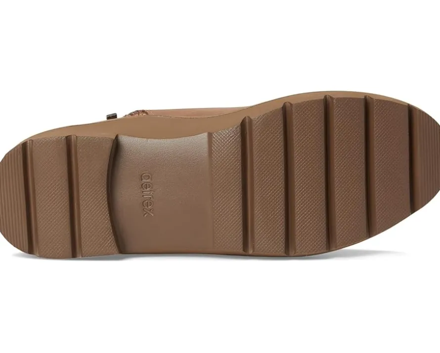 - Indulge in timeless comfort wearing the Aetrex® Hannah. Crafted with a premium leather upper and a mid-top design, this chic boot offers a perfect blend of durability and sophistication. Inside, a cozy polyester fabric lining and a cushioned EVA insole ensure a soft, supportive feel all day long. The built-in Aetrex Orthotic System provides superior arch support, helping to align your feet, stabilize your body, and relieve common foot pain. With a sturdy rubber outsole and a stylish block heel, you’ll enjoy both traction and height. The zippered side closure adds convenience to this closed-toe boot, making it an effortless choice for everyday wear.