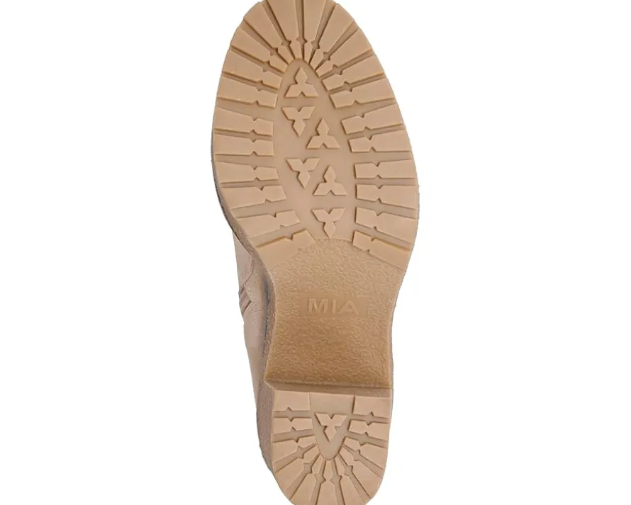 - Meet the MIA™ Harlow, your go-to boot for a night out on the town. This ankle-high boot sits on a block heel and is finished with round toe shape. Crafted with faux suede upper, the footwear has pleated goring and a side zipper for easy entry.